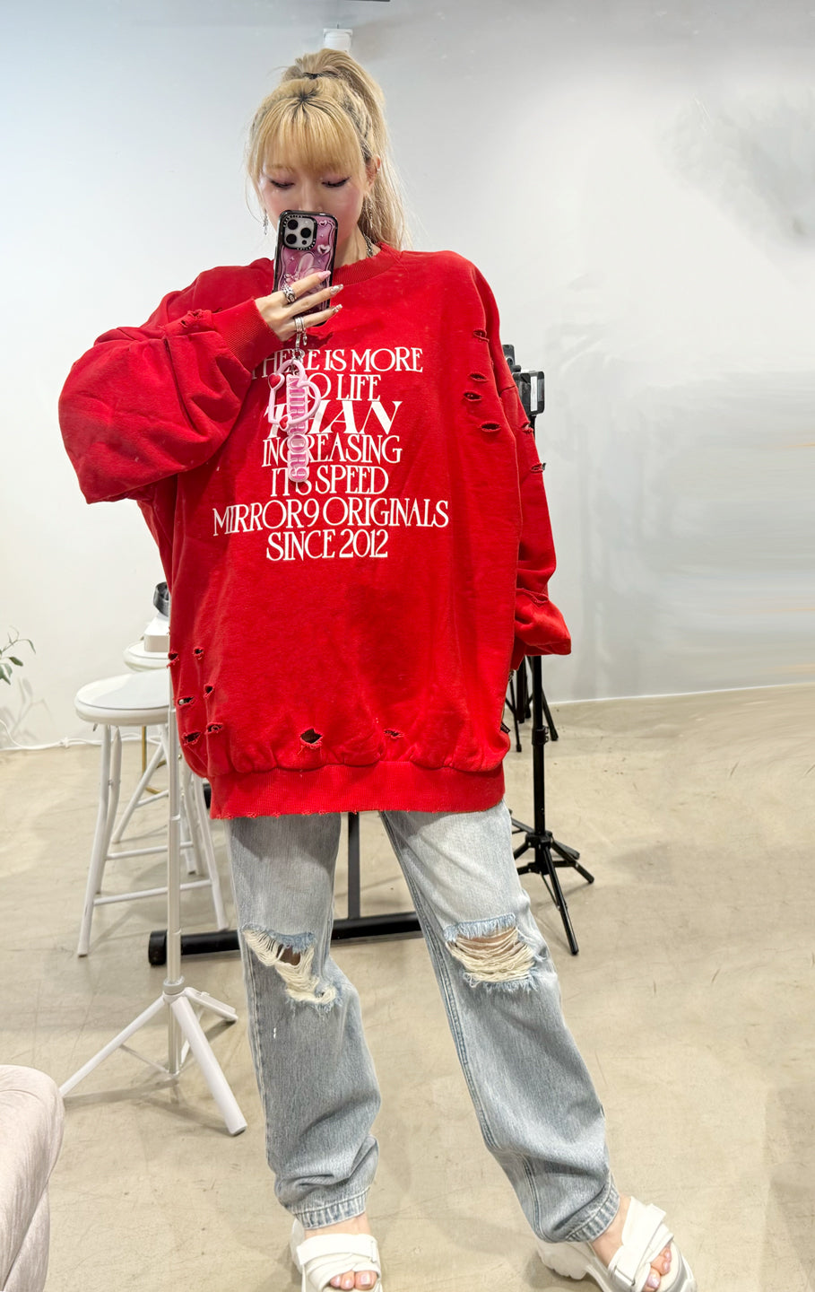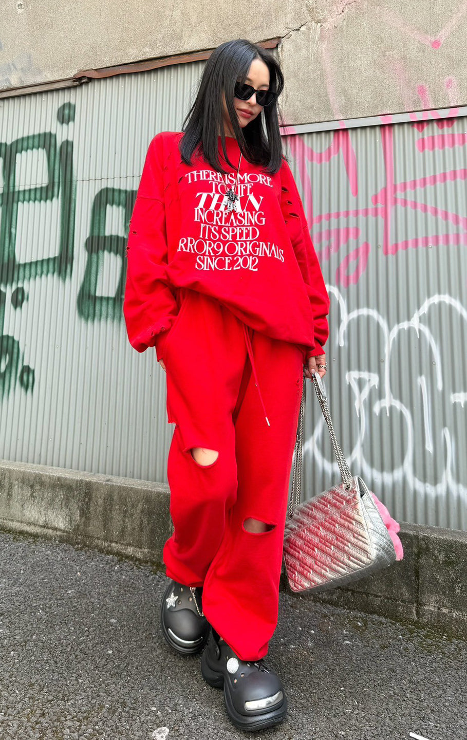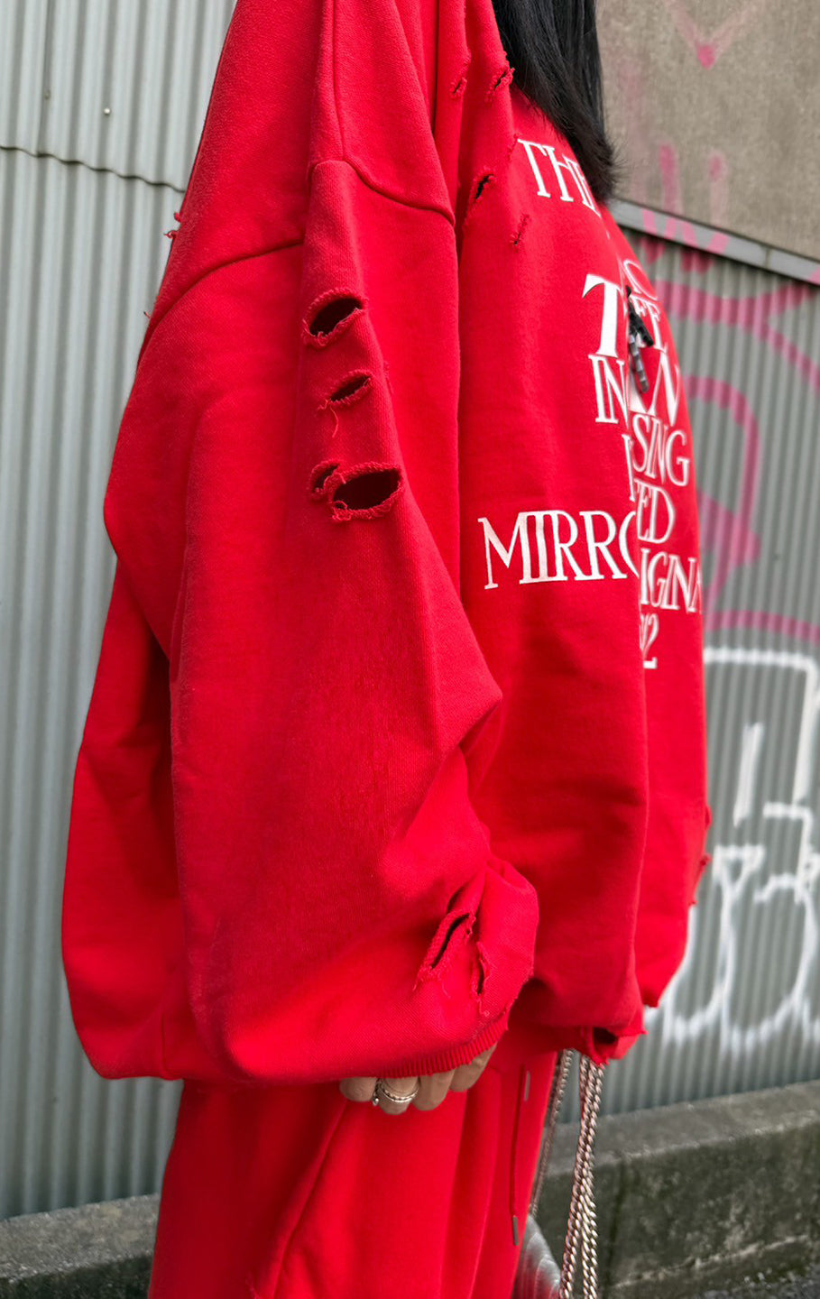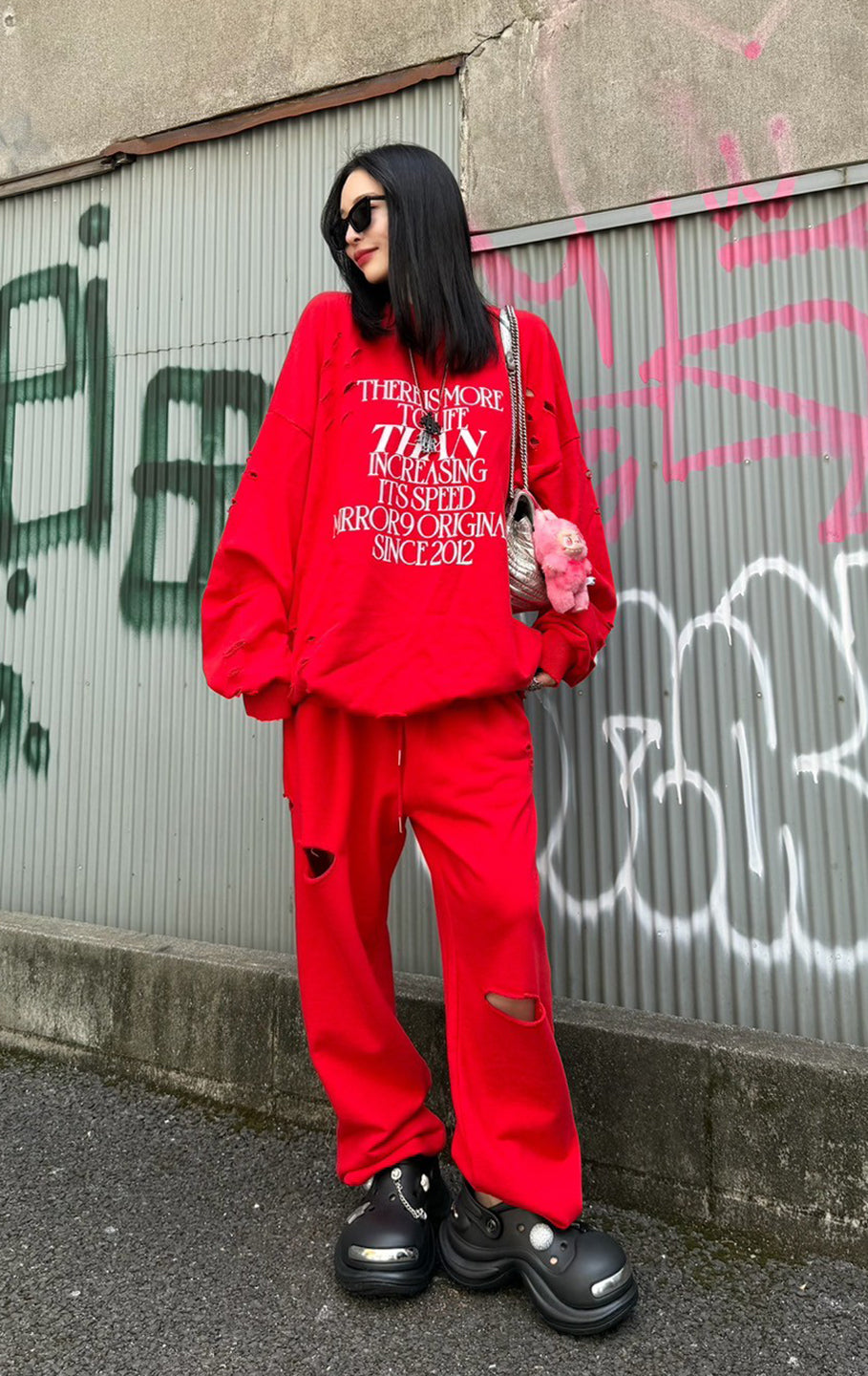 ダメージスウェットパンツを初期の頃から愛用していますが、やっとセットアップとして着れるのが嬉しいです。ダメージ感も程よく、何よりパジャマ感に見えない所がオシャレで好きです。他のボトムスとも合わせてみようと思います。