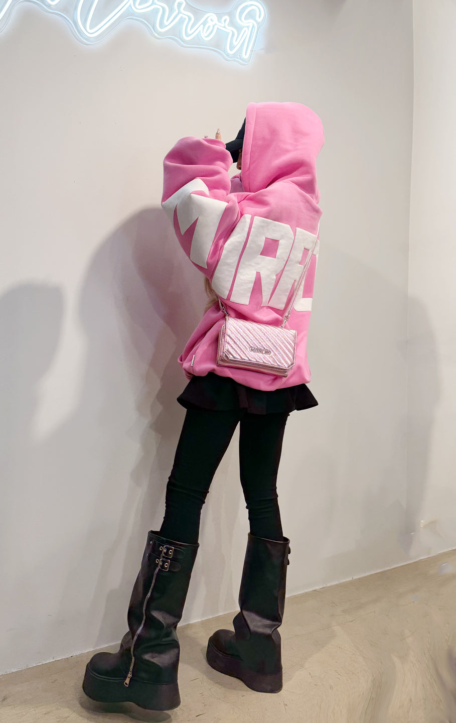 シンプルなフロントとインパクトのある背中のプリントでコントラストが際立つデザインのアイコンフーディーです。