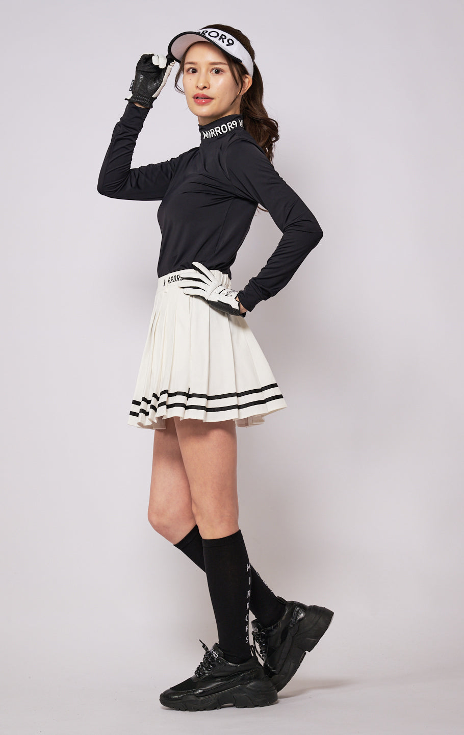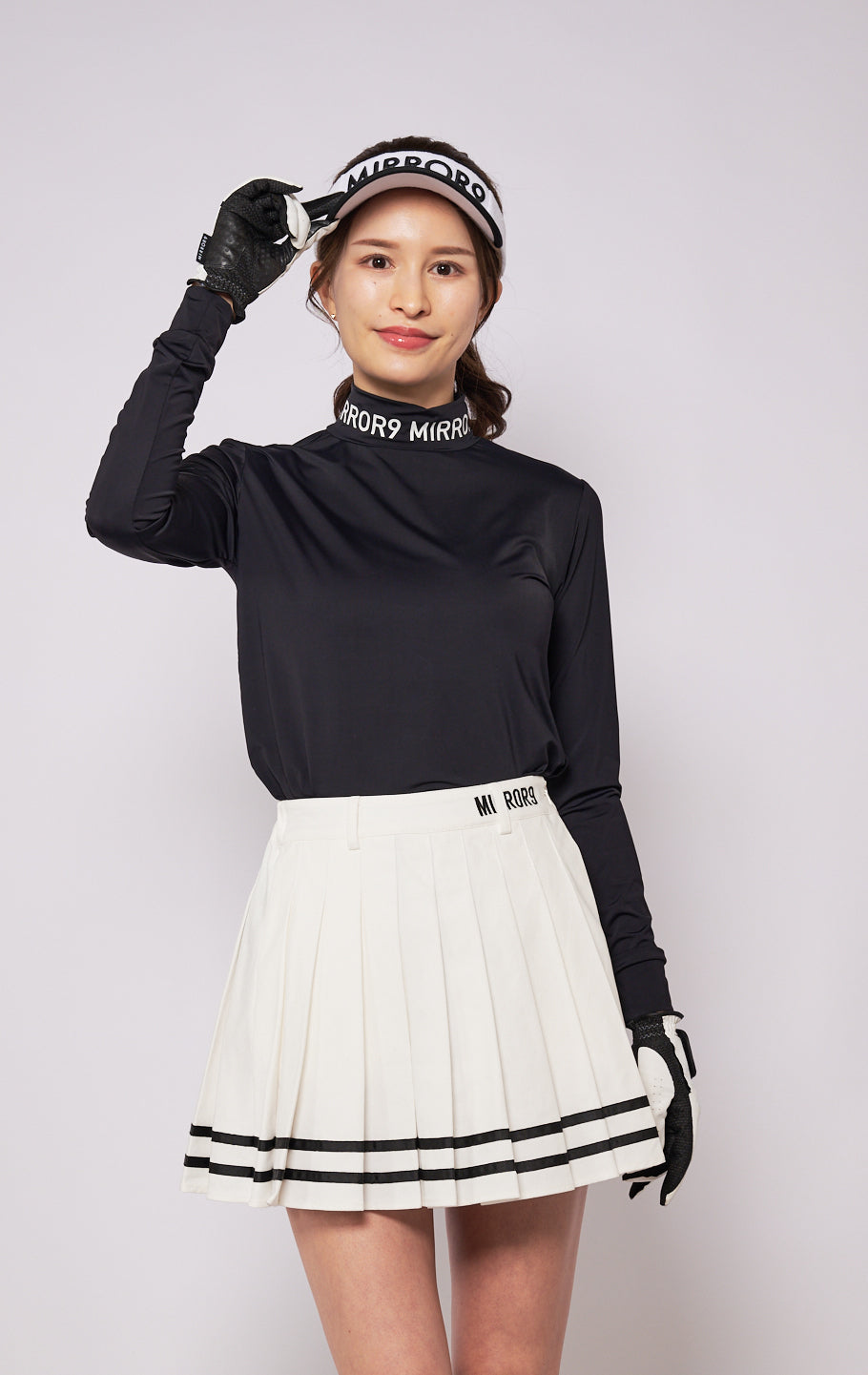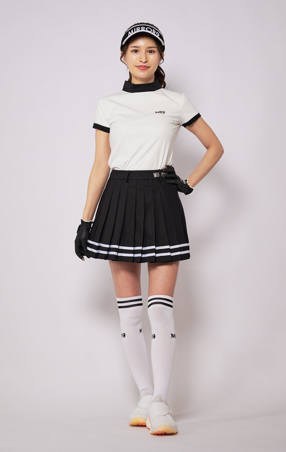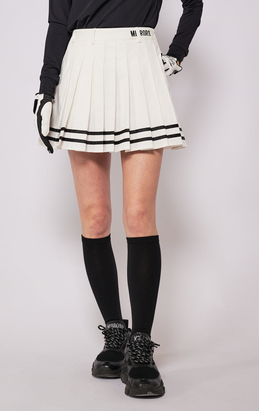 This skirt features a pleated skirt with bi-colored lines. The logo is embroidered. It opens and closes with a side zip and can be put on and taken off. *This product may pill due to scratches or friction. Thank you for your understanding as there may be individual differences in forms etc.