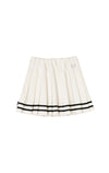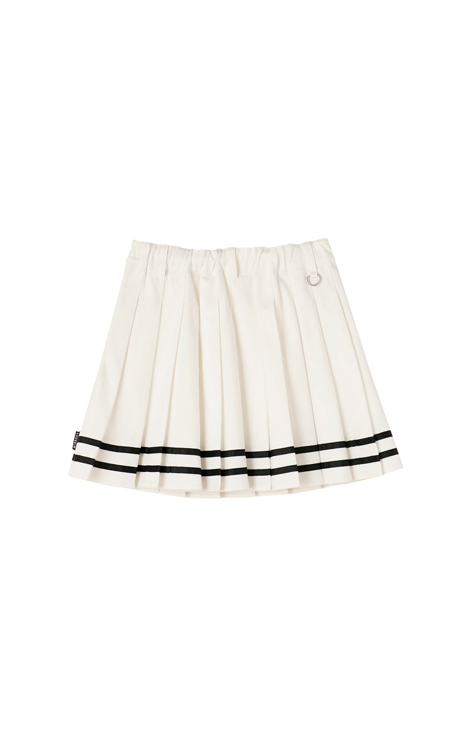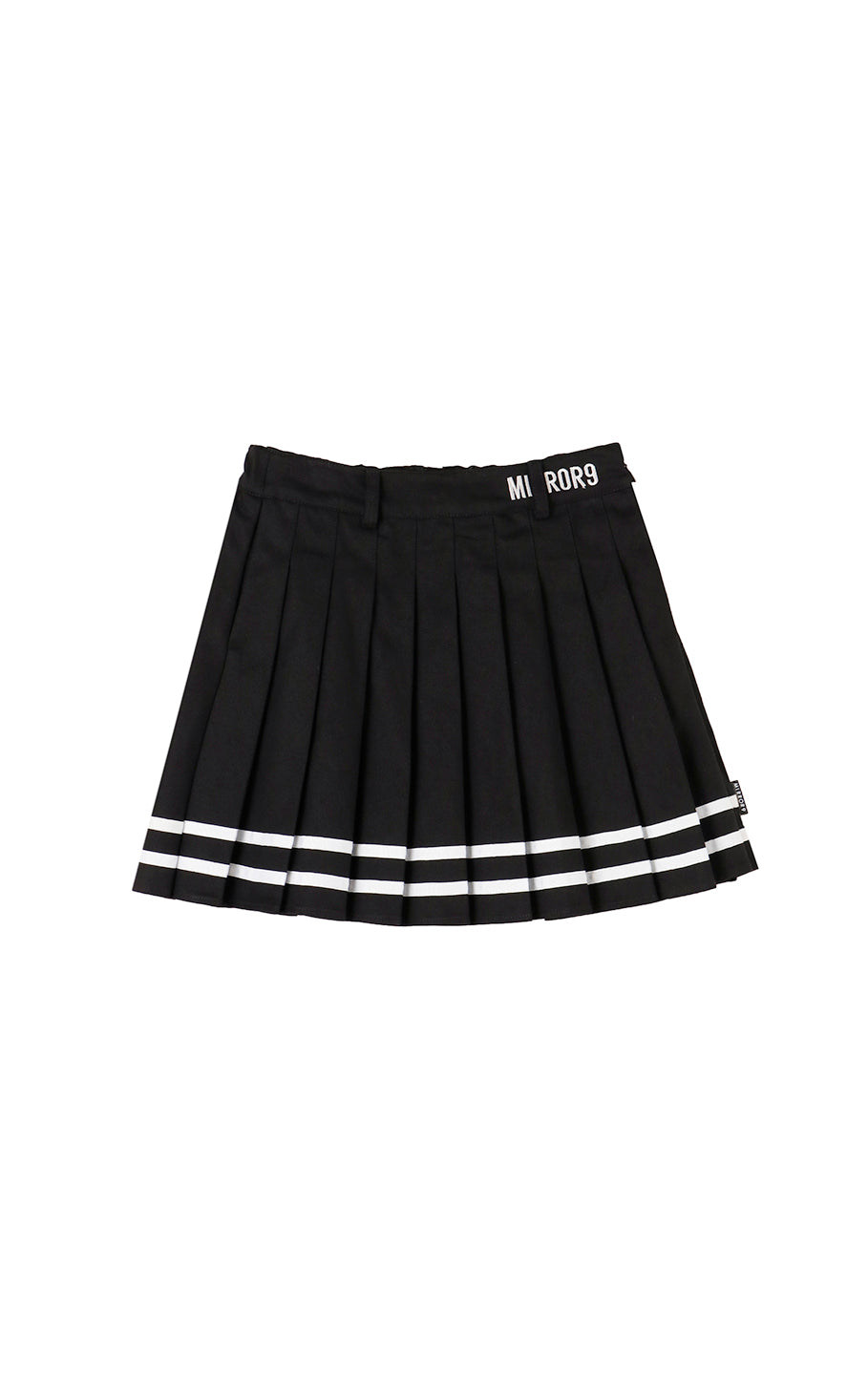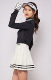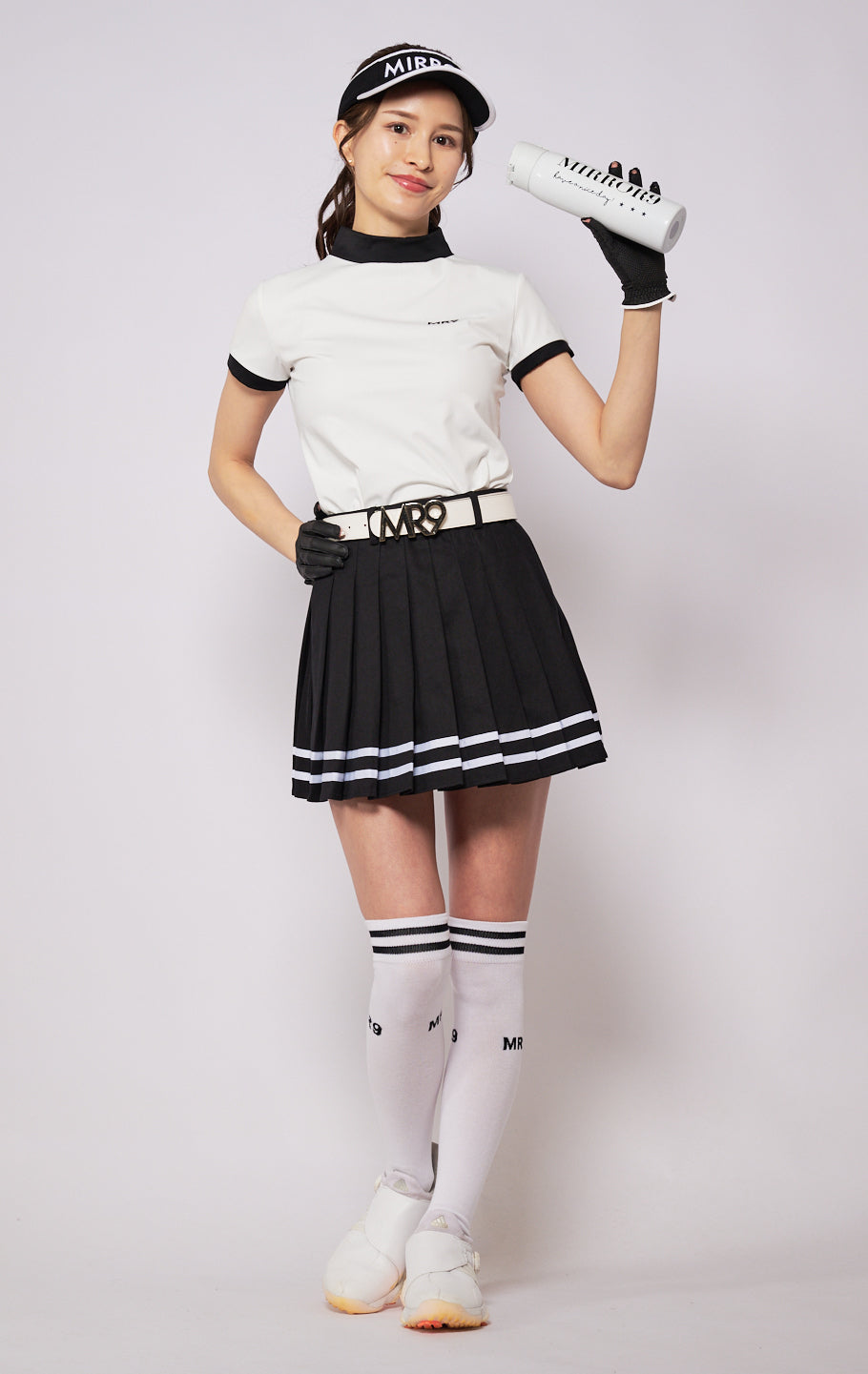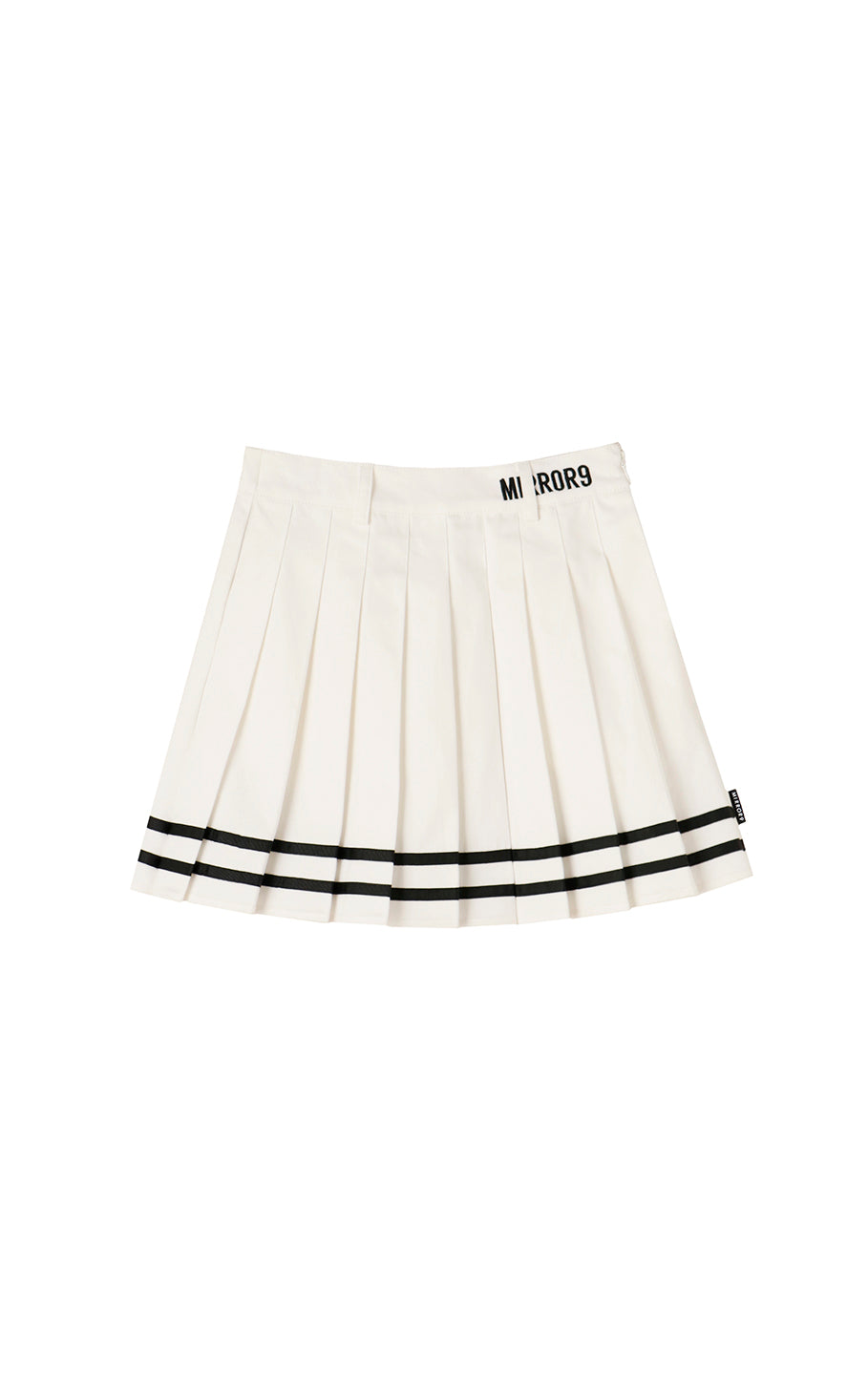 This skirt features a pleated skirt with bi-colored lines. The logo is embroidered. It opens and closes with a side zip and can be put on and taken off. *This product may pill due to scratches or friction. Thank you for your understanding as there may be individual differences in forms etc.