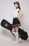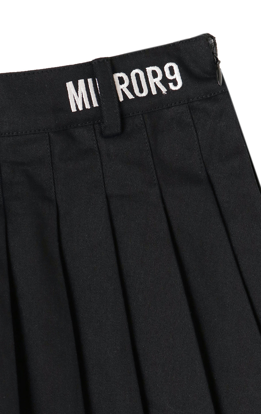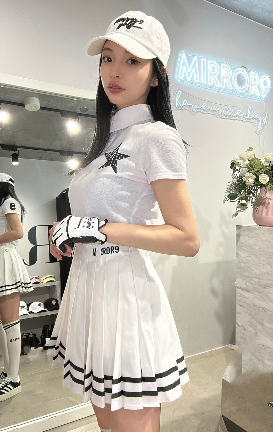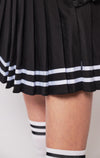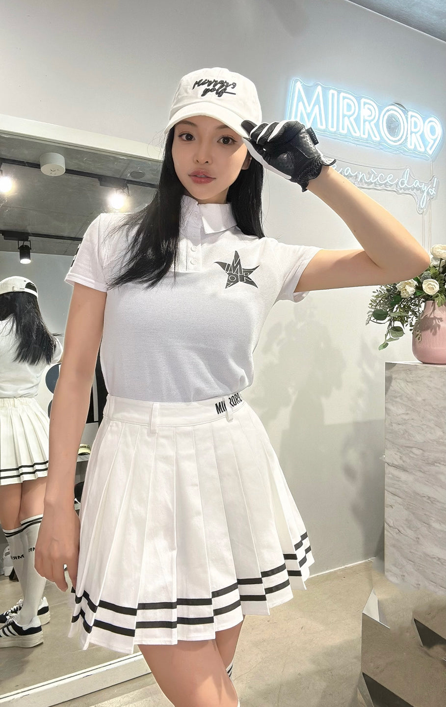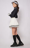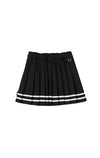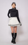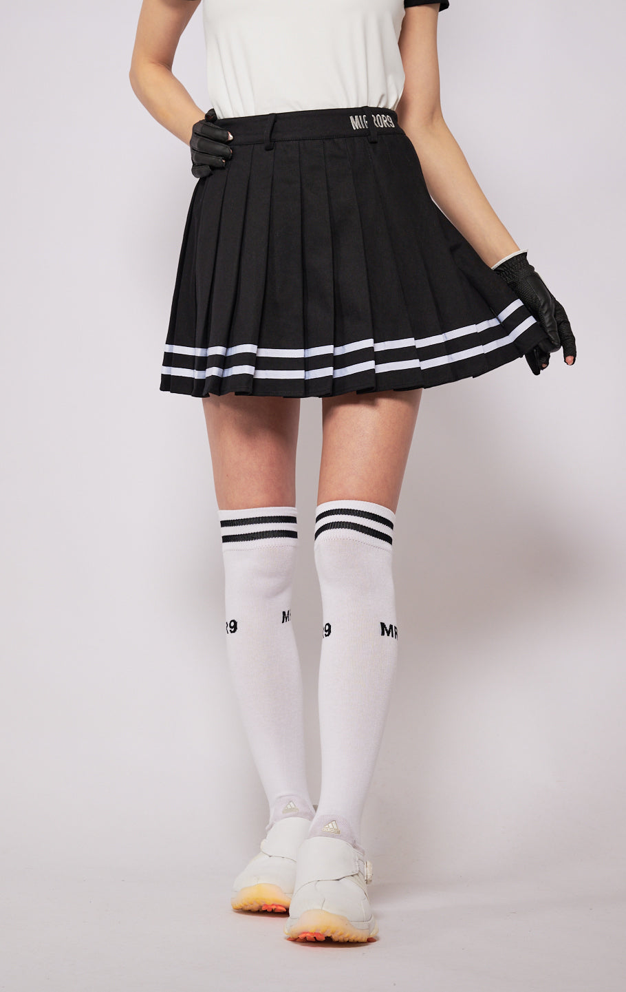 This skirt features a pleated skirt with bi-colored lines. The logo is embroidered. It opens and closes with a side zip and can be put on and taken off. *This product may pill due to scratches or friction. Thank you for your understanding as there may be individual differences in forms etc.