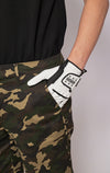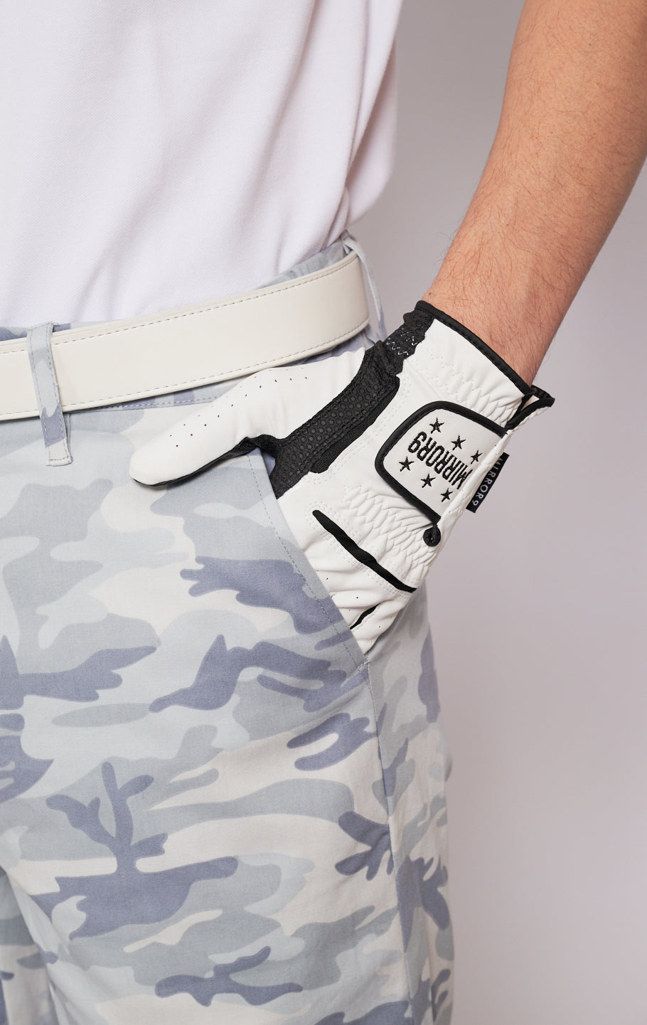 さりげないカモフラージュ柄にロゴデザインのパンツです。