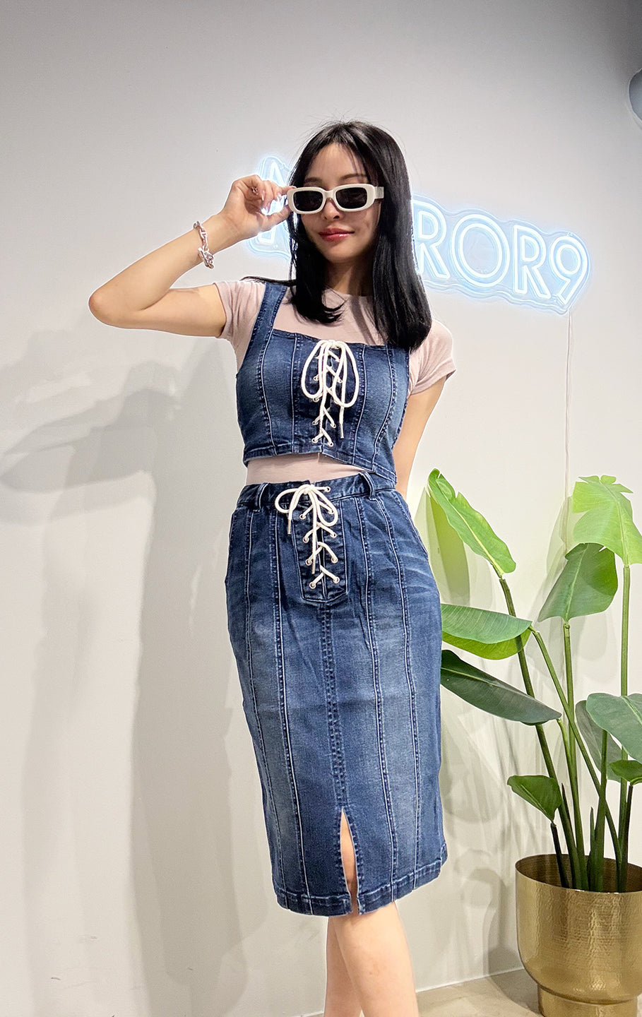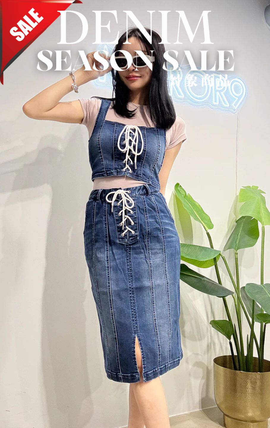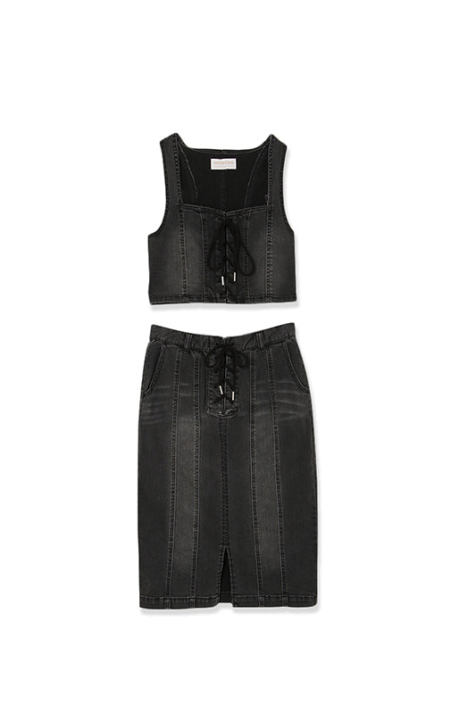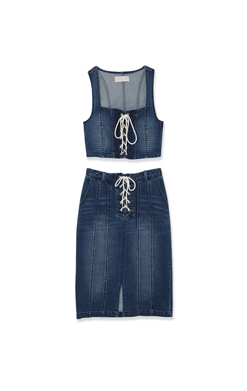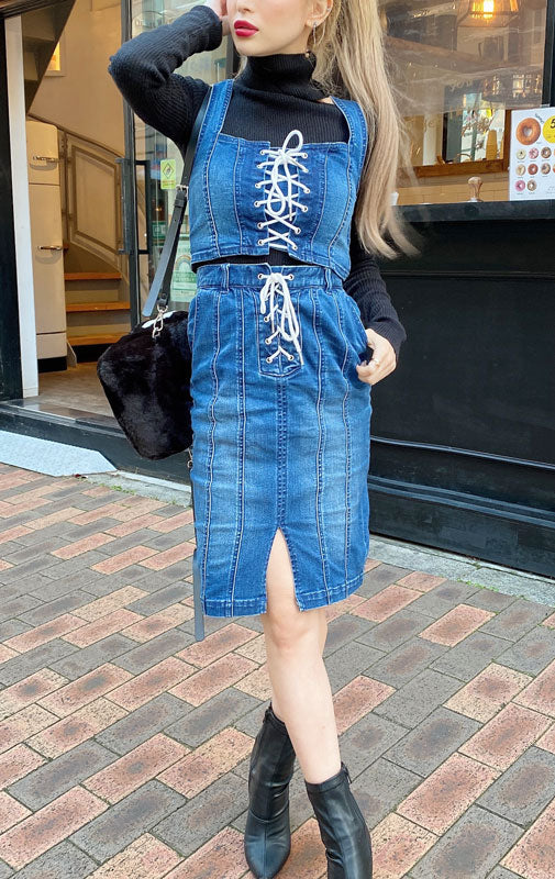 【DENIM SALE 対象商品】Lace up denim set up/2color