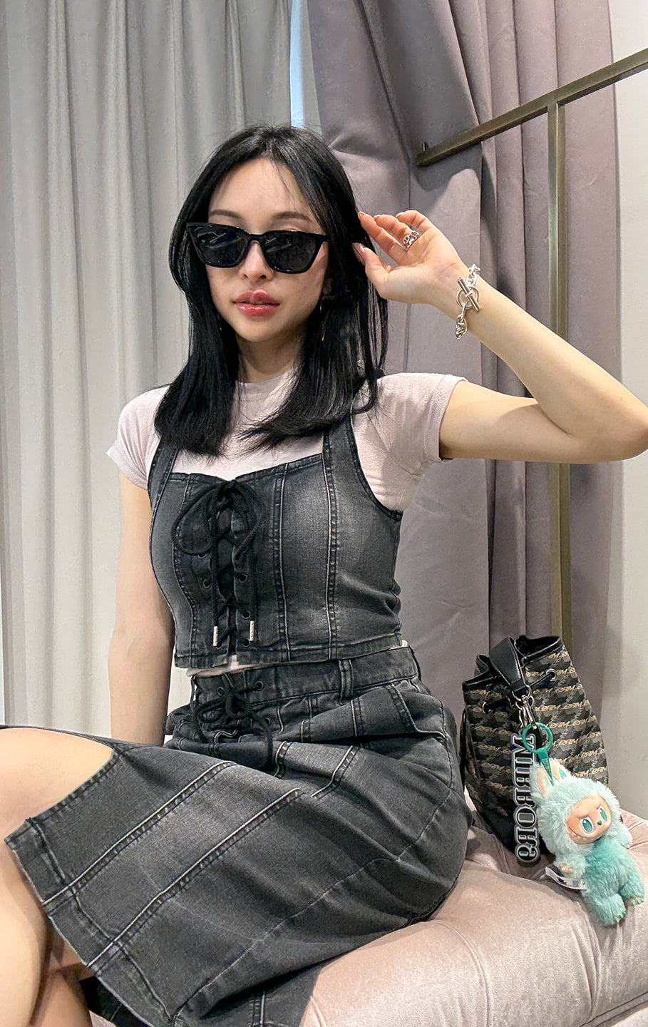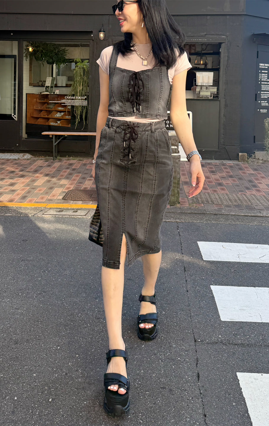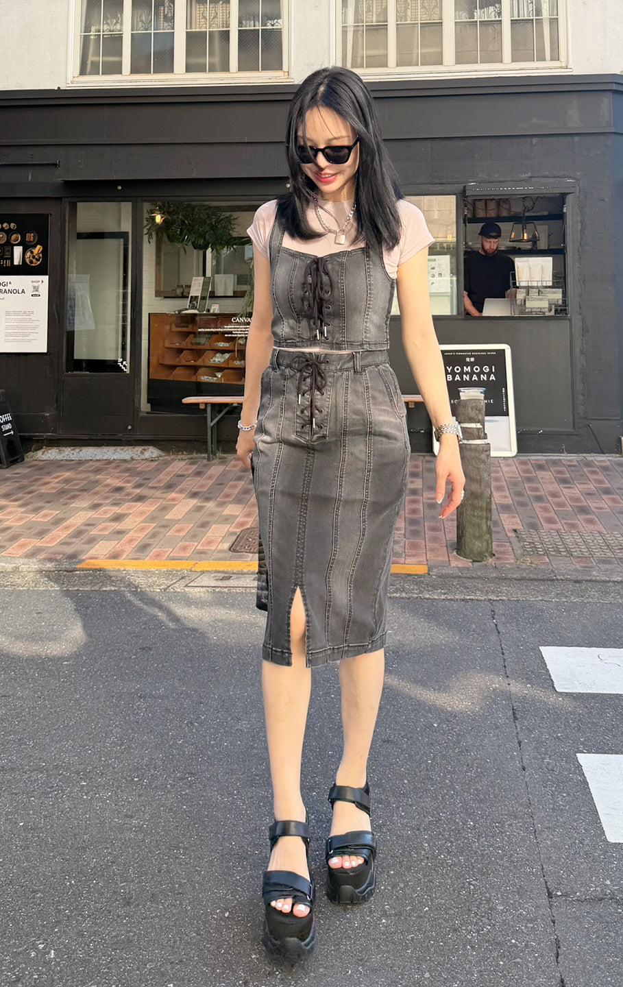 【DENIM SALE 対象商品】Lace up denim set up/2color
