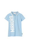大きなロゴをプリントした大胆なデザインのポロシャツです。