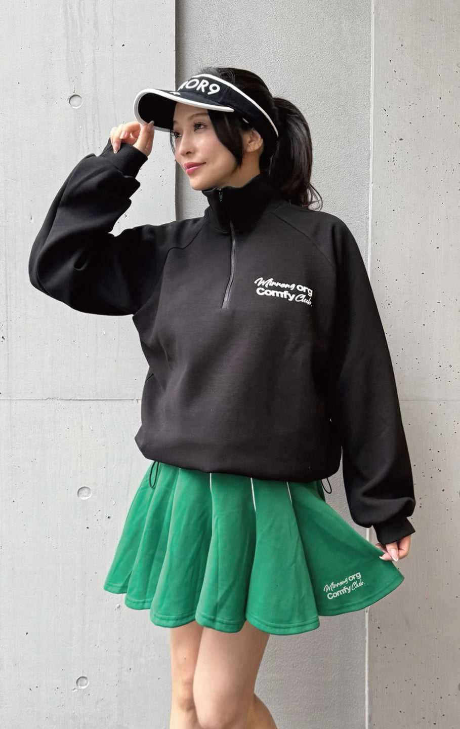 ハーフジップで着脱しやすく、アウター代わりにも使えます。