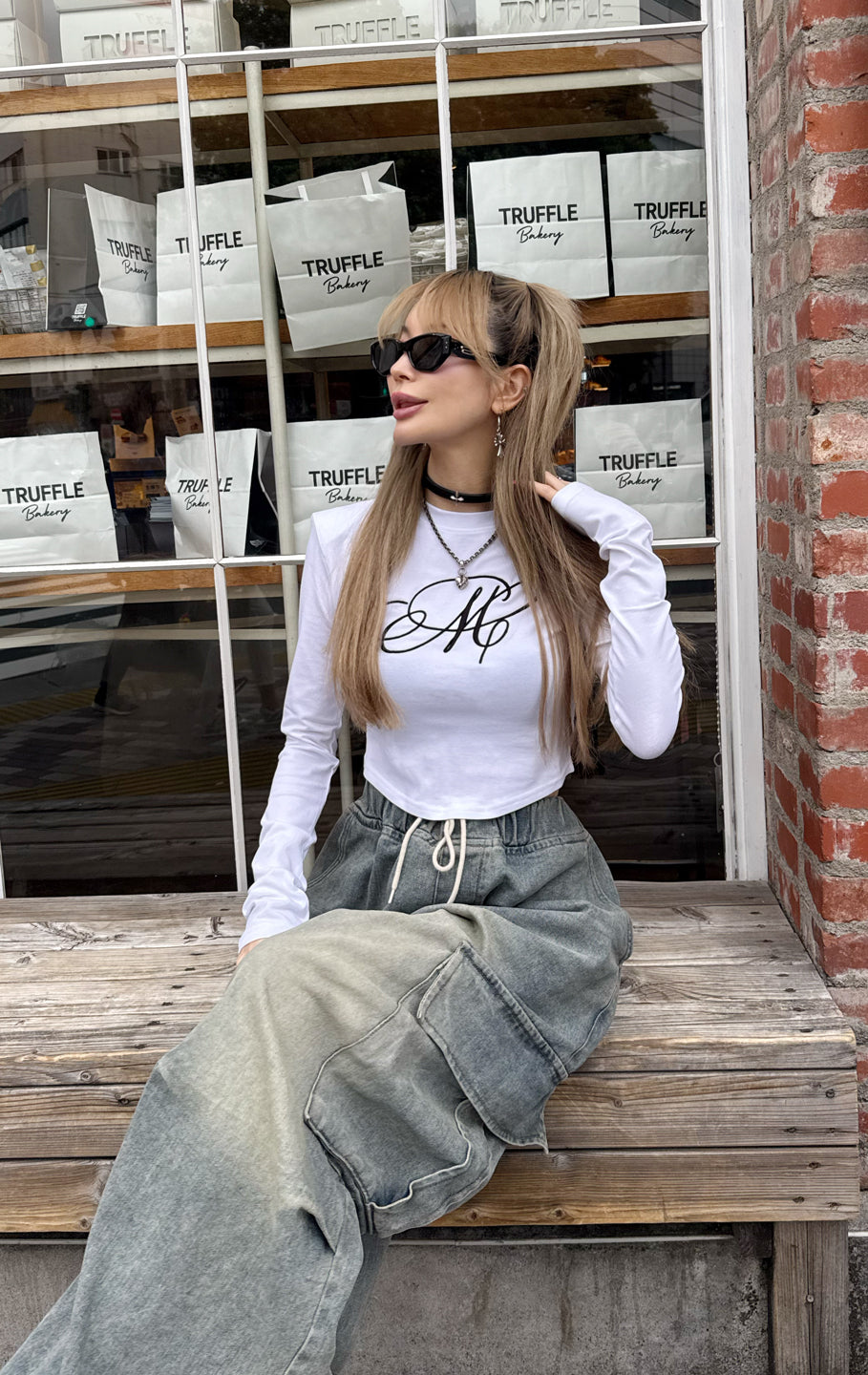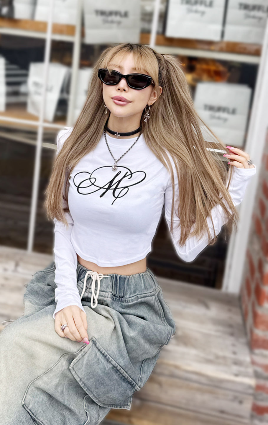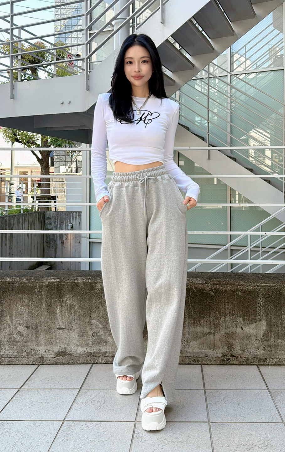 こちらも大満足のトップス。白を購入しましたが、デザインも可愛いし肩パッドが入っているのでウエストとの差がはっきりと分かりスタイルもかなり良く見えます。程よい腹チラでsweat wide pantsと合わせてホワイトコーデがとにかくかわいい♡今の少し肌寒い季節にぴったり♡