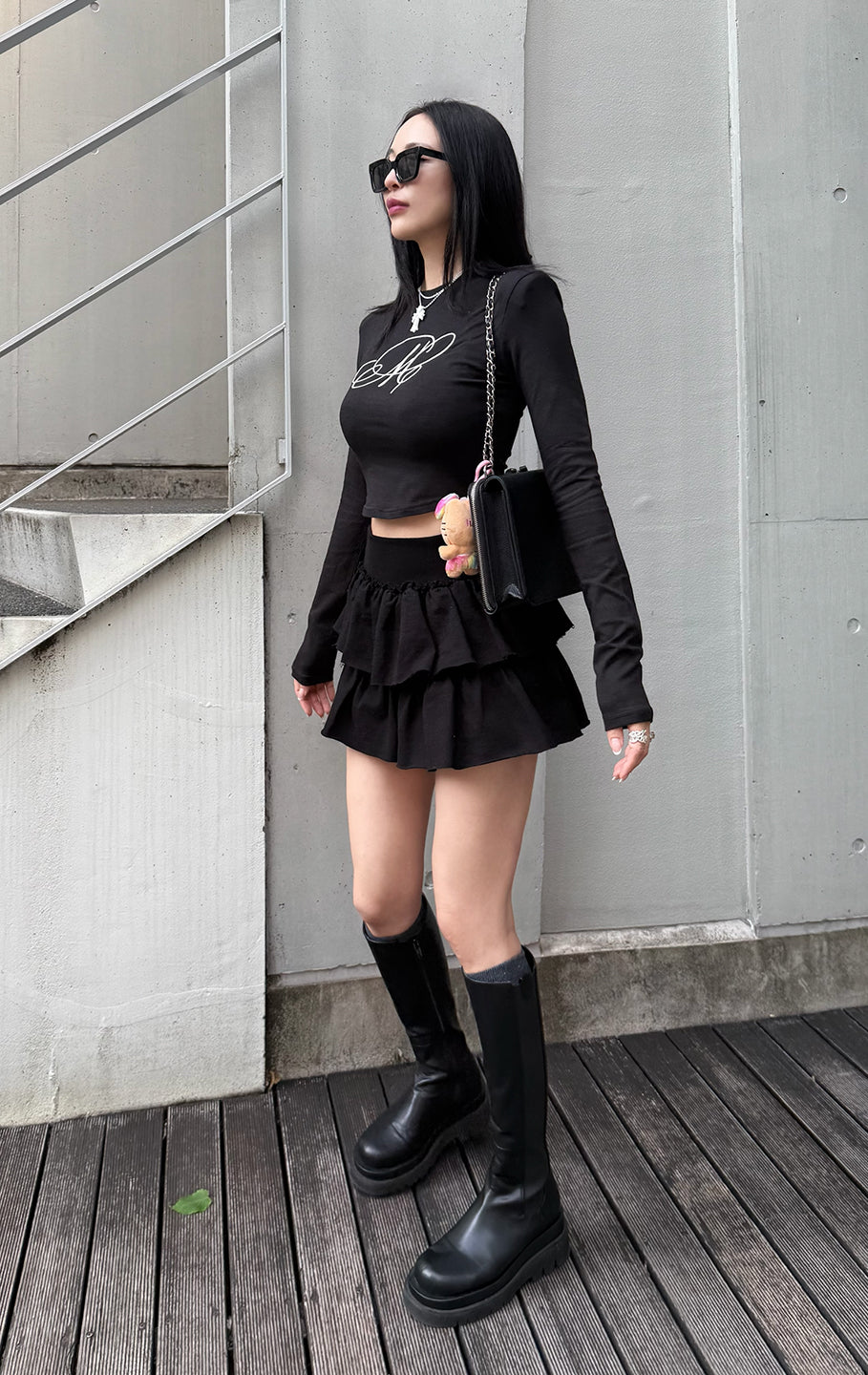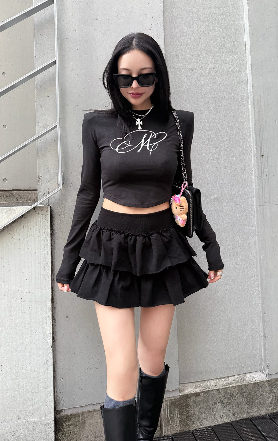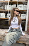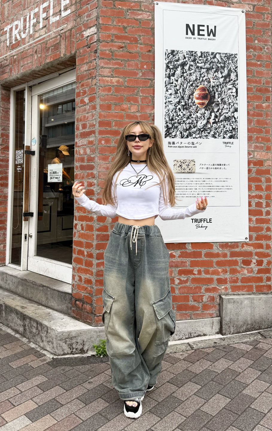 こちらも大満足のトップス。白を購入しましたが、デザインも可愛いし肩パッドが入っているのでウエストとの差がはっきりと分かりスタイルもかなり良く見えます。程よい腹チラでsweat wide pantsと合わせてホワイトコーデがとにかくかわいい♡今の少し肌寒い季節にぴったり♡