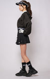 It's made of stretchy material and has an elastic waist so it's easy to put on and take off. Inner pants are integrated. You can also coordinate it as a set with a zip hoodie of the same design. The fabric has a smooth and soft feel and is just the right thickness to stretch both vertically and horizontally, so you can wear it comfortably without feeling see-through. Same material as Taylor high neck tops. *This product may pill due to scratches or friction. Thank you for your understanding as there may be individual differences in forms etc.
